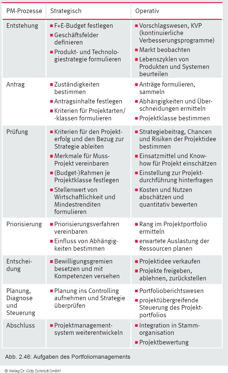 Abb. 2.46 Aufgaben des Portfoliomanagements