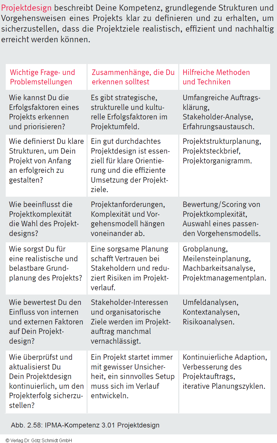Abb. 2.58 IPMA Kompetenz 3.01 Projektdesign