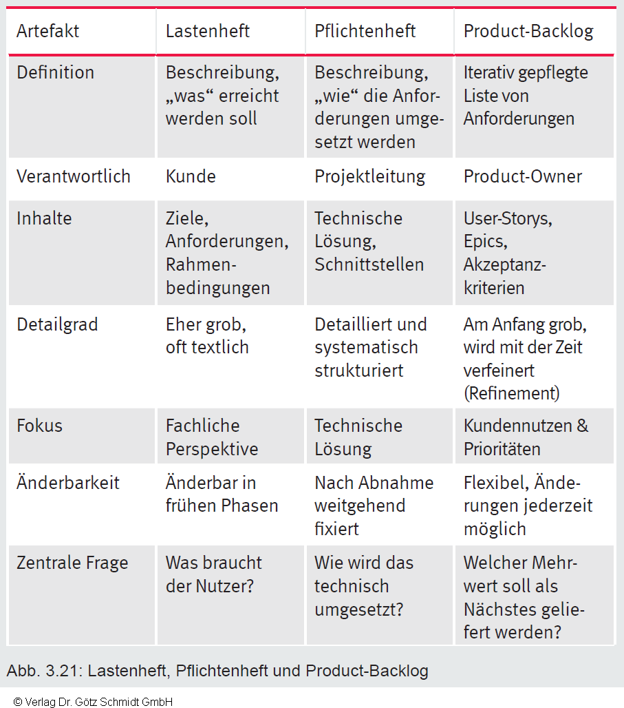 Abb. 3.021 Lastenheft, Pflichtenheft und Product-Backlog
